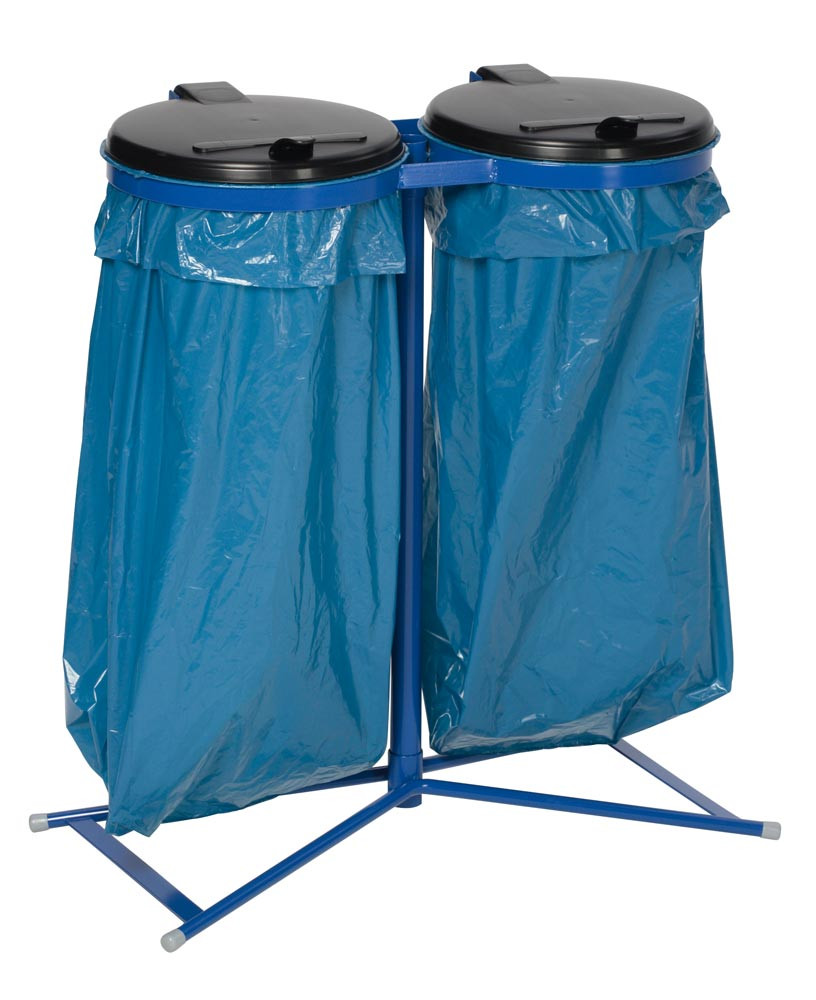 Abfallsammler mit Füßen, 2-fach, RAL 5010 enzianblau, Deckelschwarz aus Kunststoff, BxTxH 850x480x920 mm