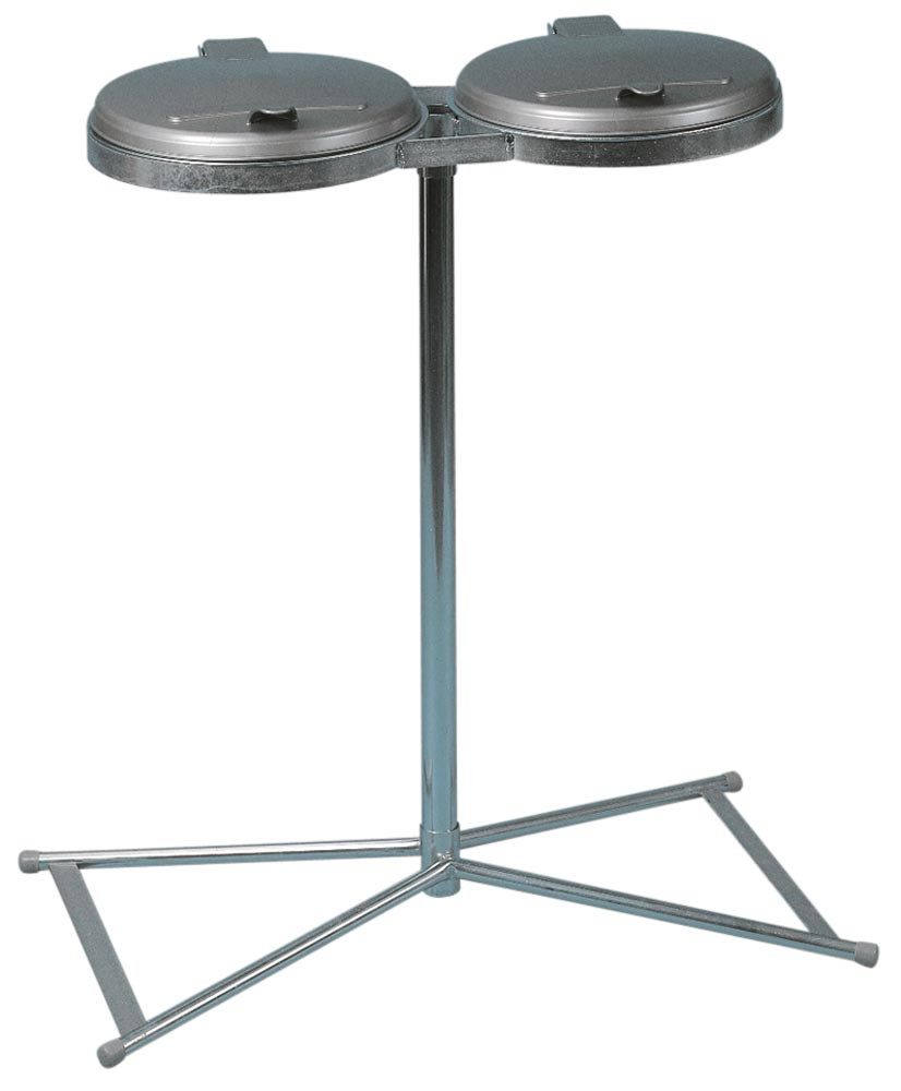 Abfallsammler mit Füßen, 2-fach, verzinkt, Deckel silber, aus Kunststoff, BxTxH 850x480x920 mm