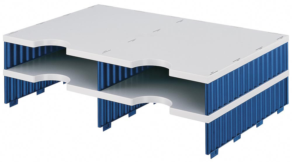 Ablage- und Sortiersystem, Anbaumodul, 2x2 Fächer, BxTxH 485x331x140 mm, Polystyrol, grau/blau