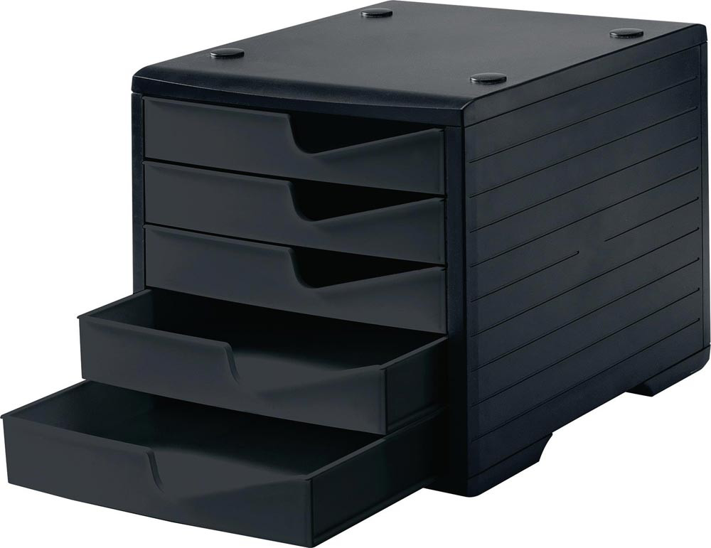Ablagebox 5 Schubladen schwarz/schwarz Polystyrol H255xB270xT340 mm
