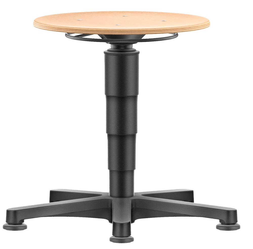 Arbeitshocker mit Gasfeder-Höhenverstellung, mit Holz-Sitzfläche und Gleitern, Sitzfläche Durchm. 400 mm, Sitz H 450-650 mm E6475778
