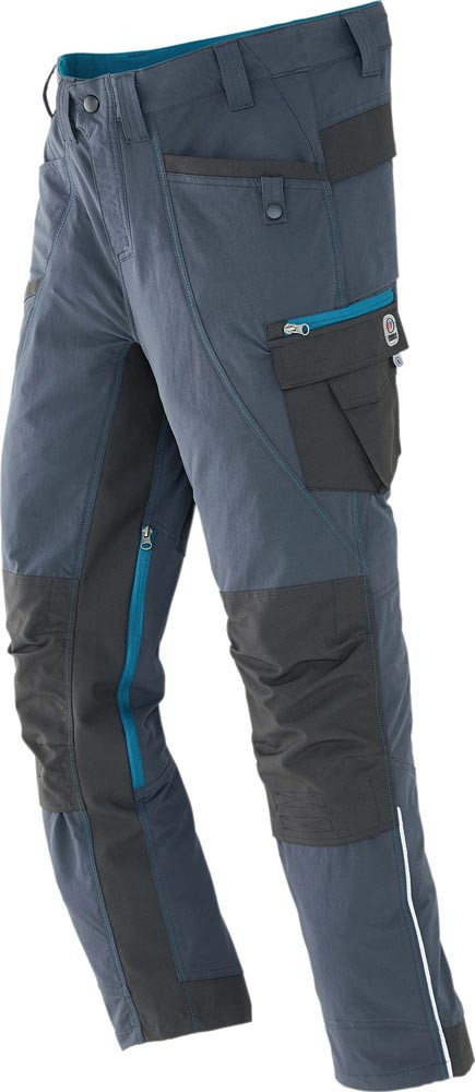 90% Polyamid / 10% Elastan · sportliche Arbeitshose aus strapazierfähigem Mischgewebe · viele praktische Taschen · kontrastfarbene und reflektierende Details