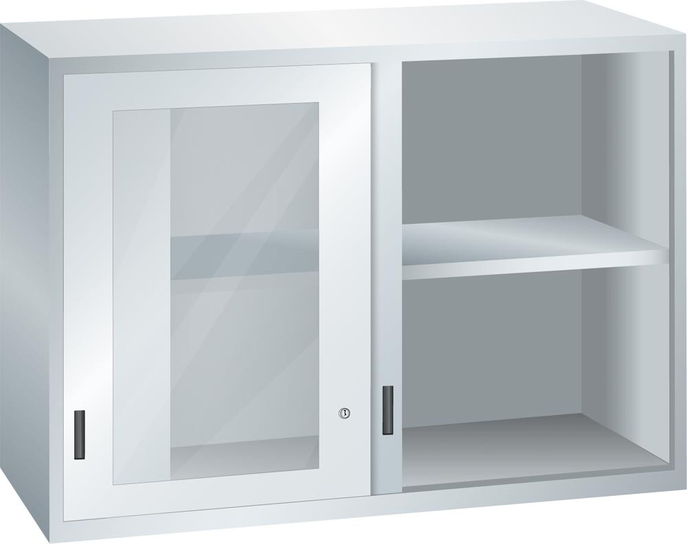 Aufsatzschrank mit Sichtfensterschiebetüren, BxTxH 1023x572x1000 mm, 1 Verstellboden, RAL 7035, passend zu Schubladenschrank 54x27 E E1979468