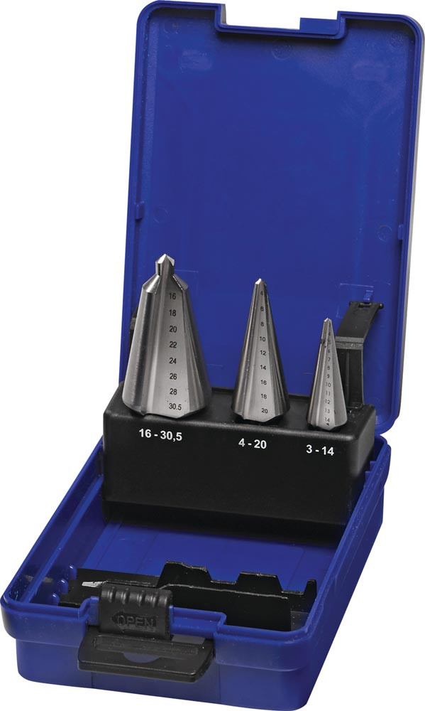 Blechschälbohrersatz 3-14/4-20/16-30,5 mm HSS-Co 3 teilig Kunststoffkassette
