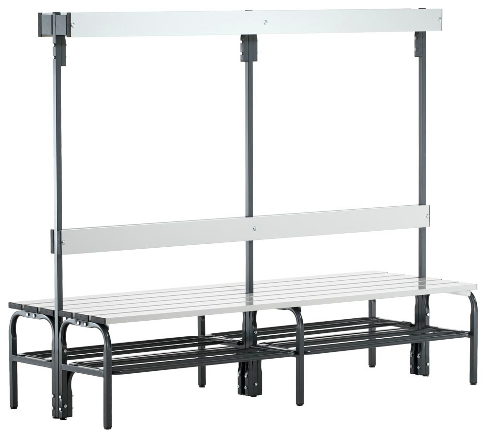 Doppelseitige Garderobenbank, ohne Schuhrost, Stahl/Alu, TxH 700x450 mm, Länge 1015 mm, RAL 7016 E849109