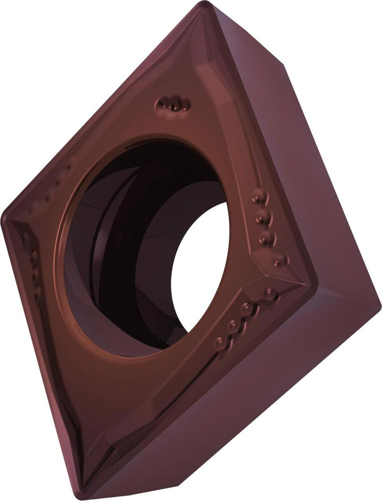Einseitige positive Drehwendeschneidplatte · 80° Rhombisch mit 7° Freiwinkel · Innenkreisdurchmesser von 9.525mm · 3.97mm Dick · 0.4mm Radius · Indexgenauigkeit nach ISO-Toleranzklasse-M · Spanbrecher FM mit verrundeter Schneidkante · im Substrat T8415.