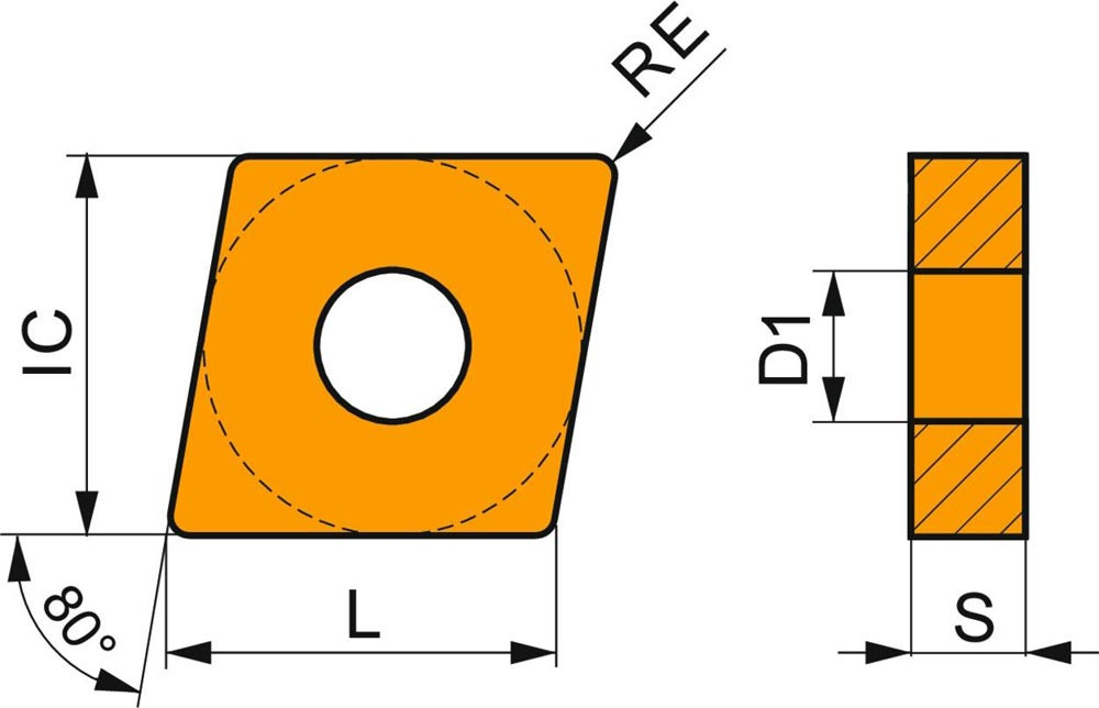 · Formcode Wendeschneidplatte: C - rhombischer 80° eingeschlossener Winkel