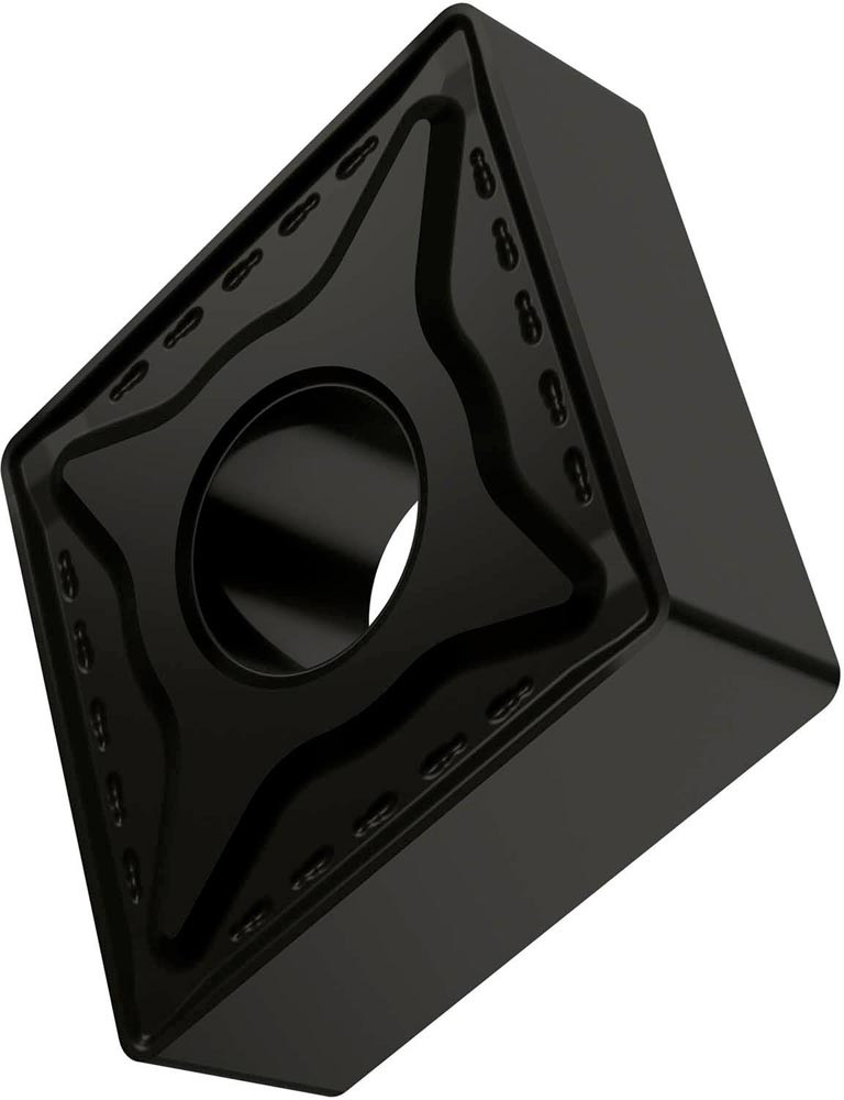 Doppelseitige negative Drehwendeschneidplatte · 80° Rhombisch mit Innenkreisdurchmesser von 12.7mm · 4.76mm Dick · 0.8mm Radius · Indexgenauigkeit nach ISO-Toleranzklasse-M · Spanbrecher RM mit verrundeter Schneidkante · im Substrat T9310 · MT-CVD beschichtet funktionell abgestuftes WC-Co-Carbid im ISO-Bereich P01 -P15 · zum medium bis schruppen bearbeiten von Stählen