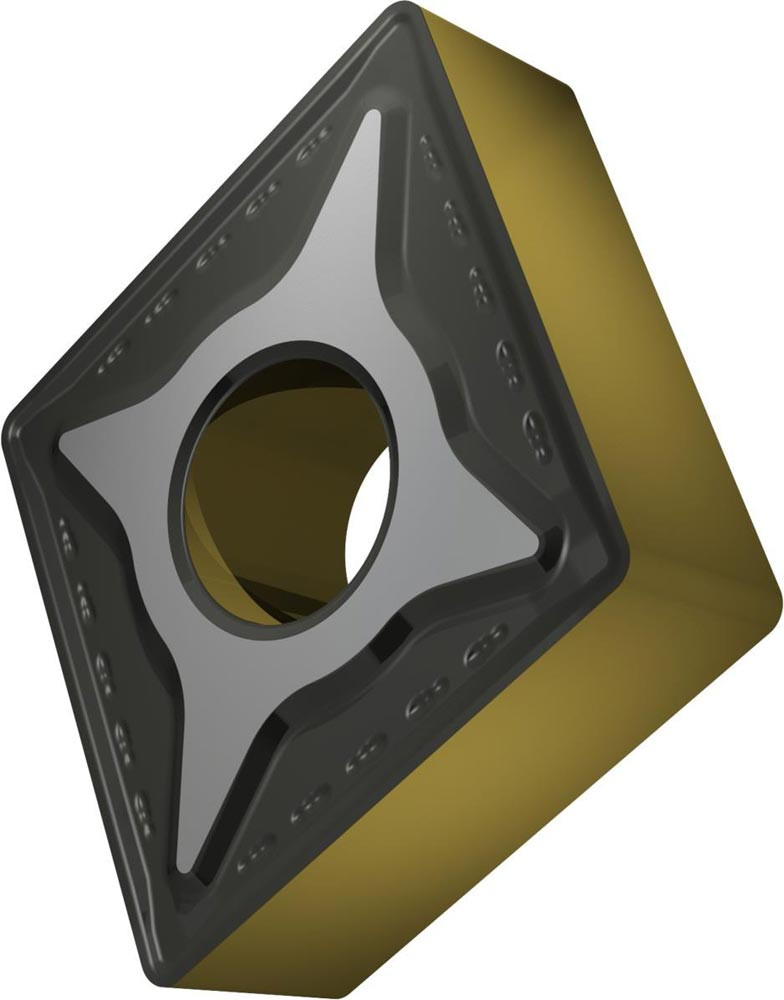 Doppelseitige negative Drehwendeschneidplatte · 80° Rhombisch mit Innenkreisdurchmesser von 15.575mm · 6.35mm Dick · 0.8mm Radius · Indexgenauigkeit nach ISO-Toleranzklasse-M · Spanbrecher RM mit verrundeter Schneidkante · im Substrat T9415 · MT-CVD beschichtet WC-Co Substrat im ISO-Bereich P05 -P30 · zum medium bis schruppen bearbeiten von Stählen