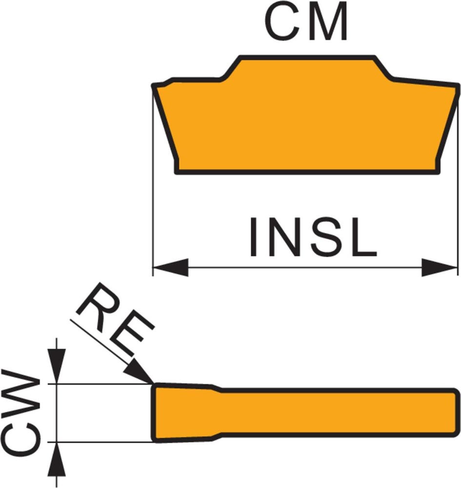 Einseitige Ein-und Abstech Wendeschneidplatte · 16.4mm lang mit einer 4mm Schnittbreite und einem 0.4mm Eckenradius · eine Genauigkeit nach Toleranzklasse M und einem Spanbrecher CM · Substrat T8330 PVD beschichtetes Feinstkorn WC-Co Hartmetall im ISO-Substrats-Bereich P25-P40 und K20-K40 zur Bearbeitung von Stahl und Guss in Kombination mit DORMER PRAMET GF..(RL) 04 · GG..(RL) 04 und XLCCN 0416 Ein-und Abstechwerkzeugen