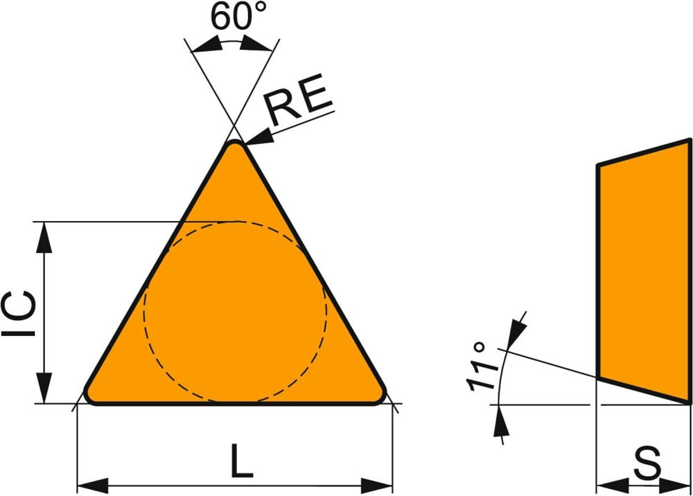 · Formcode Wendeschneidplatte: T - dreieckiger 60° eingeschlossener Winkel