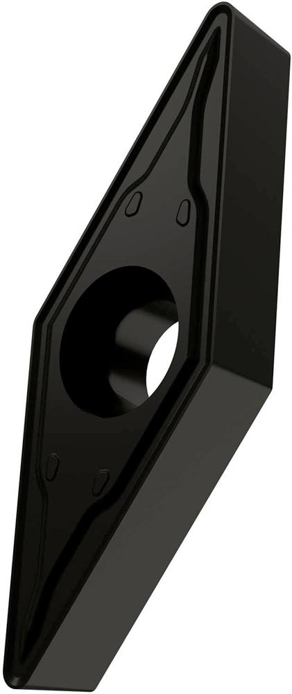 Einseitige positive Drehwendeschneidplatte · 35° Rhombisch mit 5° Freiwinkel · Innenkreisdurchmesser von 9.525mm · 4.76mm Dick · 0.8mm Radius · Indexgenauigkeit nach ISO-Toleranzklasse-M · Spanbrecher FM2 mit verrundeter Schneidkante · im Substrat T9335 · MT-CVD beschichtet functionally graded WC-Co carbide im ISO-Bereich P20 -P45 · zum schlichten bis medium bearbeiten von Stählen
