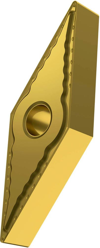Doppelseitige negative Drehwendeschneidplatte · 35° Rhombisch mit Innenkreisdurchmesser von 9.525mm · 4.76mm Dick · 0.4mm Radius · Indexgenauigkeit nach ISO-Toleranzklasse-M · Spanbrecher SM mit verrundeter Schneidkante · im Substrat T6310 · PVD beschichtet WC-Co Feinstkornsubstrat in den ISO-Bereichen P01 -P15/M01 -M15/K05 -K20 und S01 -S15 · zum schlichten bis schruppen bearbeiten von Stählen · nichtrostenden Stählen · Gusseisen und Superlegierungen