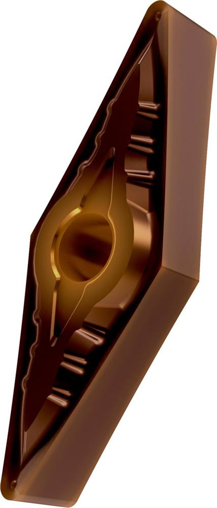 Doppelseitige negative Drehwendeschneidplatte · 35° Rhombisch mit Innenkreisdurchmesser von 9.525mm · 4.76mm Dick · 0.8mm Radius · Indexgenauigkeit nach ISO-Toleranzklasse-M · Spanbrecher SF mit verrundeter Schneidkante · im Substrat T8415.