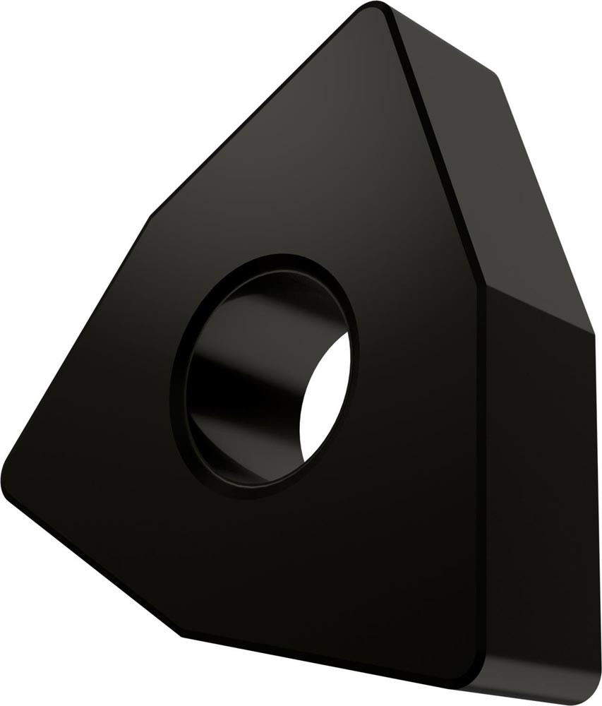 Doppelseitige negative Drehwendeschneidplatte · 80° Trigon mit Innenkreisdurchmesser von 12.7mm · 4.76mm Dick · 0.8mm Radius · Indexgenauigkeit nach ISO-Toleranzklasse-M mit verrundeter und facettierter Schneidkante · im Substrat T5305 · MT-CVD beschichtet WC-Co Substrat im ISO-Bereich K01 -K15 · zum schlichten bis schruppen bearbeiten von Gusseisen