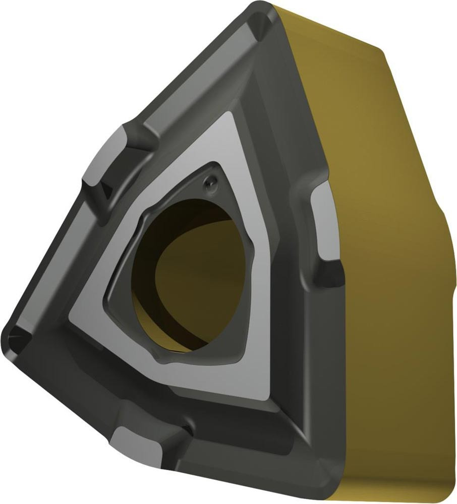 Doppelseitige negative Drehwendeschneidplatte · 80° Trigon mit Innenkreisdurchmesser von 9.525mm · 4.76mm Dick · 0.8mm Radius · Indexgenauigkeit nach ISO-Toleranzklasse-M · Spanbrecher MR mit Wiper-Geometrie · im Substrat T9415 · MT-CVD beschichtet WC-Co Substrat im ISO-Bereich P05 -P30 · zum medium bis schruppen bearbeiten von Stählen