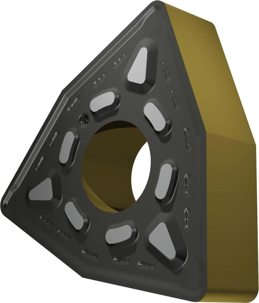 Doppelseitige negative Drehwendeschneidplatte · 80° Trigon mit Innenkreisdurchmesser von 12.7mm · 4.76mm Dick · 0.8mm Radius · Indexgenauigkeit nach ISO-Toleranzklasse-M · Spanbrecher RM mit verrundeter Schneidkante · im Substrat T9415 · MT-CVD beschichtet WC-Co Substrat im ISO-Bereich P05 -P30 · zum medium bis schruppen bearbeiten von Stählen