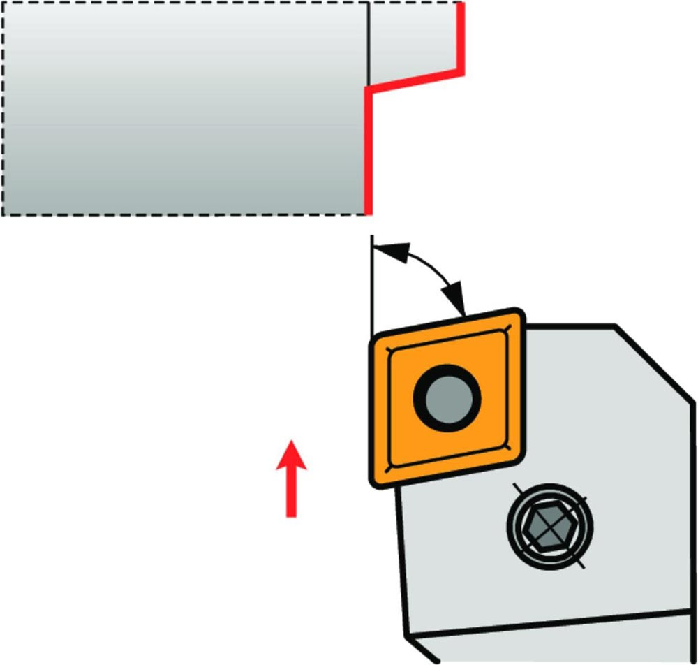 Dreh-Trägerwerkzeug mit Kniehebelklemmung zum spannen von 80° Rhombus negative Wendeschneidplatten mit einem Innenkreisdurchmesser von 19.05mm · 6.35mm Dick (ISO Bezeichnung CN.. 1906.. ) · linke Ausführung zum 75° Längsdrehen mit abgesetzem Schaft · 32mm Werkzeughöhe x 32mm Breite x 170mm Länge für Stirndrehen ohne Schulter