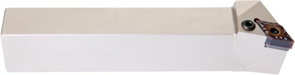 Dreh-Trägerwerkzeug mit Kniehebelklemmung zum spannen von 55° Rhombus negative Wendeschneidplatten mit einem Innenkreisdurchmesser von 12.7mm · 6.35mm Dick (ISO Bezeichnung DN.. 1506.. ) · linke Ausführung für Sonderanwendungen · 32mm Werkzeughöhe x 25mm Breite x 170mm Länge für Kegeldrehen · Kopierdrehen in einer und mehreren Richtungen und Längsdrehen mit und ohne Schulter