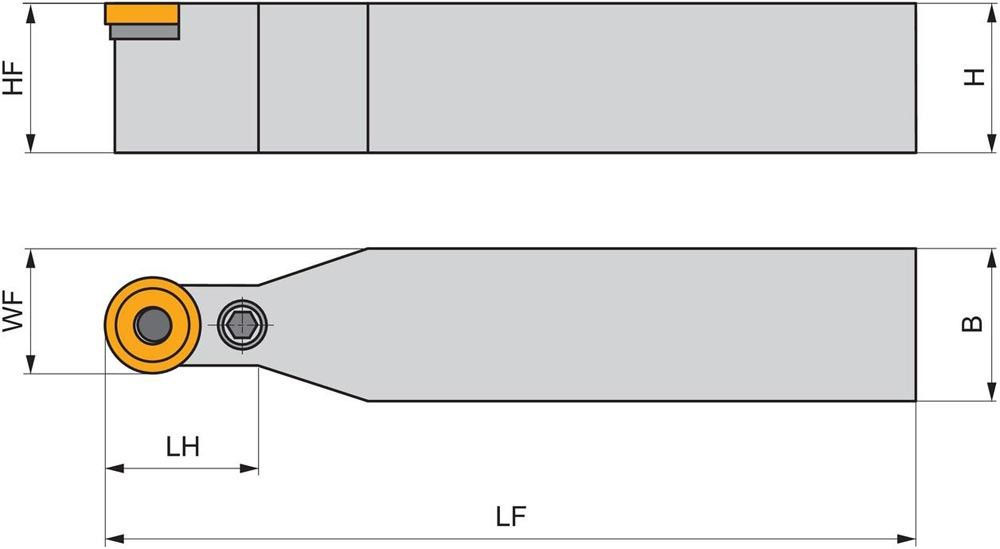 Dreh-Trägerwerkzeug mit Kniehebelklemmung zum spannen von Rund positive Wendeschneidplatten mit einem Durchmesser von 25mm · 7.94mm Dick (ISO Bezeichnung RCMX 2507MO ) · neutrale Ausführung zum Stirn-and Längsdrehen mit Zylinderschaft · 40mm Werkzeughöhe x 40mm Breite x 250mm Länge für Kegeldrehen · Kopierdrehen in einer und mehreren Richtungen und Längsdrehen ohne Schulter
