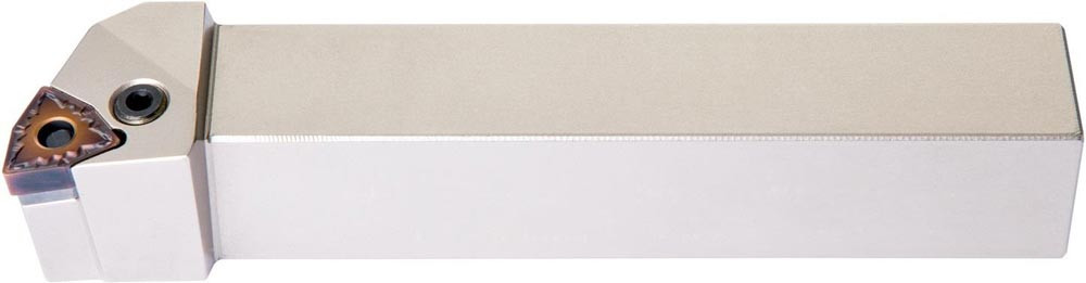 Dreh-Trägerwerkzeug mit Kniehebelklemmung zum spannen von 80° Trigonal negative Wendeschneidplatten mit einem Innenkreisdurchmesser von 9.525mm · 4.76mm Dick (ISO Bezeichnung WN.. 0604.. ) · rechte Ausführung zum 95° Stirn-und Längsdrehen mit abgesetzem Schaft · 20mm Werkzeughöhe x 20mm Breite x 125mm Länge für Kegeldrehen · Stirndrehen mit und ohne Schulter und Längsdrehen mit und ohne Schulter