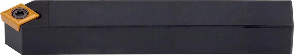 Dreh-Trägerwerkzeug mit Schraubklemmung zum spannen von 80° Rhombus positive Wendeschneidplatten mit einem Innenkreisdurchmesser von 6.35mm · 2.38mm Dick (ISO Bezeichnung CC.. 0602.. ) · rechte Ausführung zum 45° Stirndrehen mit Zylinderschaft · 10mm Werkzeughöhe x 10mm Breite x 70mm Länge für entgraten · Kegeldrehen · Kopierdrehen in einer und mehreren Richtungen und Längsdrehen ohne Schulter