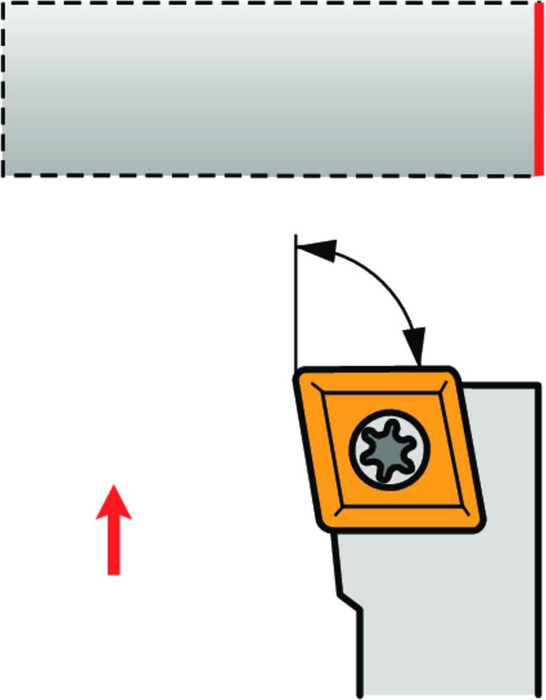 Dreh-Trägerwerkzeug mit Schraubklemmung zum spannen von 80° Rhombus positive Wendeschneidplatten mit einem Innenkreisdurchmesser von 9.525mm · 3.97mm Dick (ISO Bezeichnung CC.. 09T3.. ) · rechte Ausführung zum 90° Längsdrehen mit abgesetzem Schaft · 16mm Werkzeughöhe x 16mm Breite x 100mm Länge für Stirndrehen mit und ohne Schulter