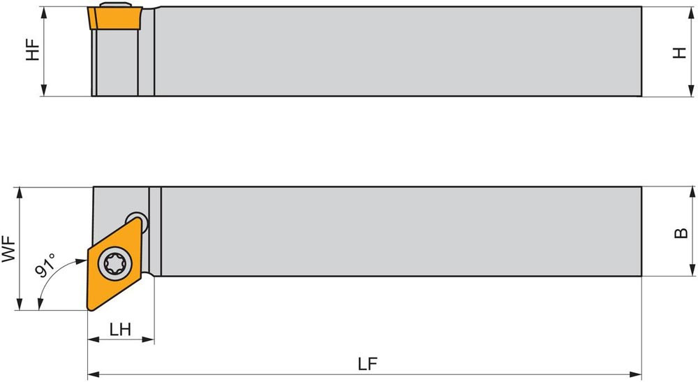 Drehmeißel mit Schraubklemmung · auch kompatibel für Langdrehautomaten zum spannen einer 55° Rhombisch positive Wendeschneidplatte mit einem Inkreisdurchmesser von 9.525mm · 3.97mm Dicke (ISO Bezeichnung DC.. 11T3.. ) · rechte Ausführung 90° Stirndrehen mit abgesetztem Schaft · 16mm Schaft Höhe x 16mm Breite x 125mm Länge zum Kegeldrehen und Längsdrehen mit und ohne Schulter