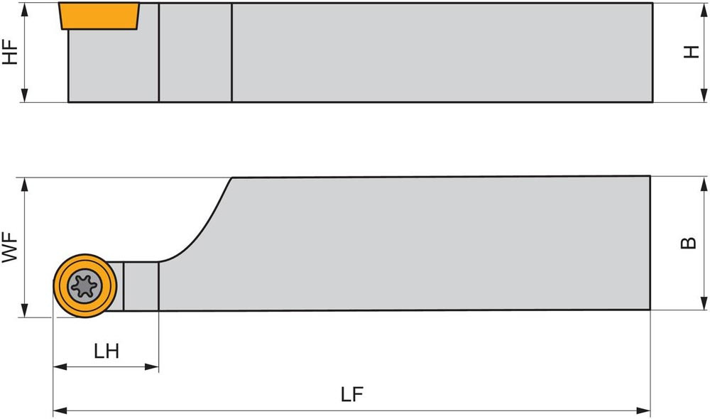 Dreh-Trägerwerkzeug mit Schraubklemmung zum spannen von Rund positive Wendeschneidplatten mit einem Durchmesser von 8mm · 3.18mm Dick (ISO Bezeichnung RC.. 0803MO ) · linke Ausführung zum Stirn-and Längsdrehen mit Zylinderschaft · 32mm Werkzeughöhe x 25mm Breite x 170mm Länge für Kegeldrehen · Kopierdrehen in einer und mehreren Richtungen und Längsdrehen ohne Schulter