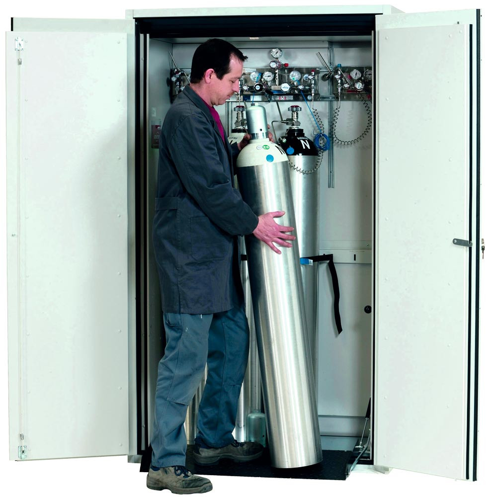 Druckgasflaschenschrank, 30 Min. feuerwiderstandsfähig, für 2x50-l-Flaschen, BxTxH 600x615x2050 mm, RAL 7035 E813230