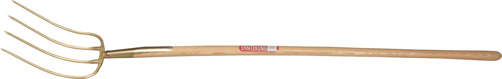 geschmiedet · gold lackiert · 4-zinkig · mit lackiertem Eschenstiel