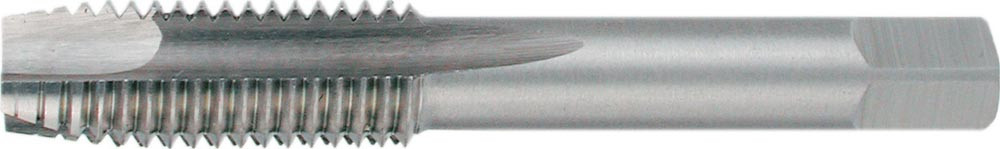 Gewindebohrer HSS für Durchgangsgewinde · in unlegierte und niedriglegierte Stähle bis 800 N/mm² und Gewindebohrer HSSE-Co 5 für Durchgangsgewinde · in unlegierte und legierte Stähle bis 1000 N/mm² Festigkeit · Temperguß und NE-Metalle. Das Gewinde kann von Hand und im Maschinengebrauch in einem Arbeitsgang geschnitten werden.