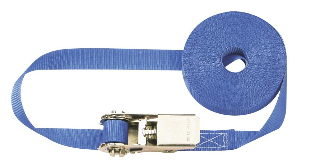 Einteiliger Zurrgurt, 800 daN zul. Zugkraft in der Umreifung, Gurtbreite 25 mm, Länge 6 m, Farbe blau, VE 4 Stück