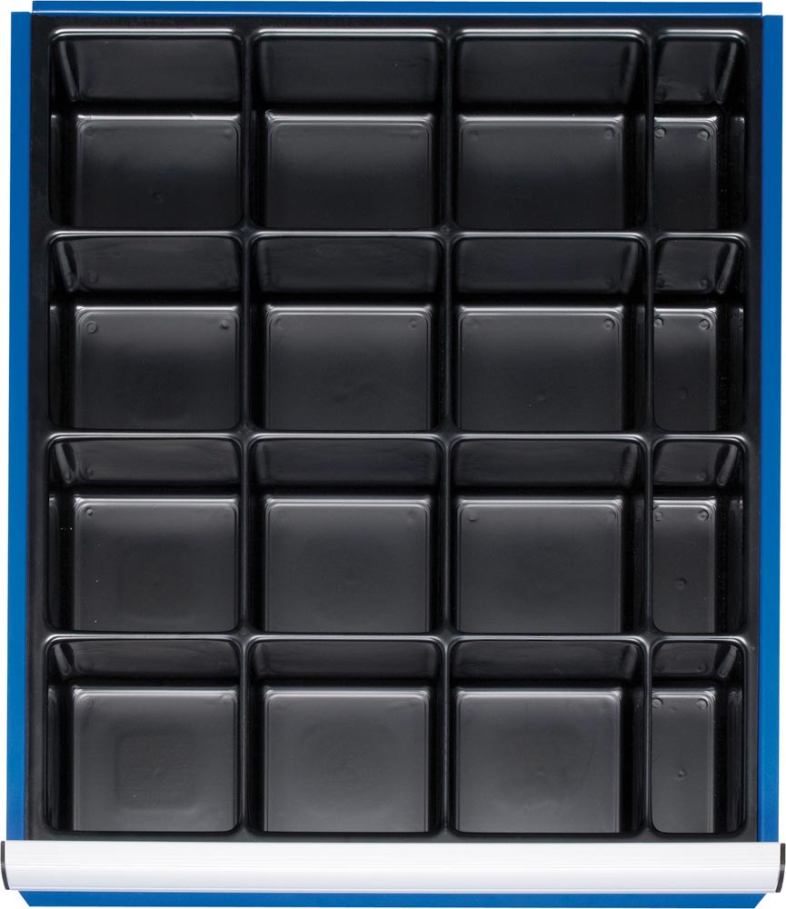 Einteilungsset für Schubladen BxT 490x560 mm: Kleinteileeinsatz mit 16 Fächern, für Fronthöhe 120-270 mm