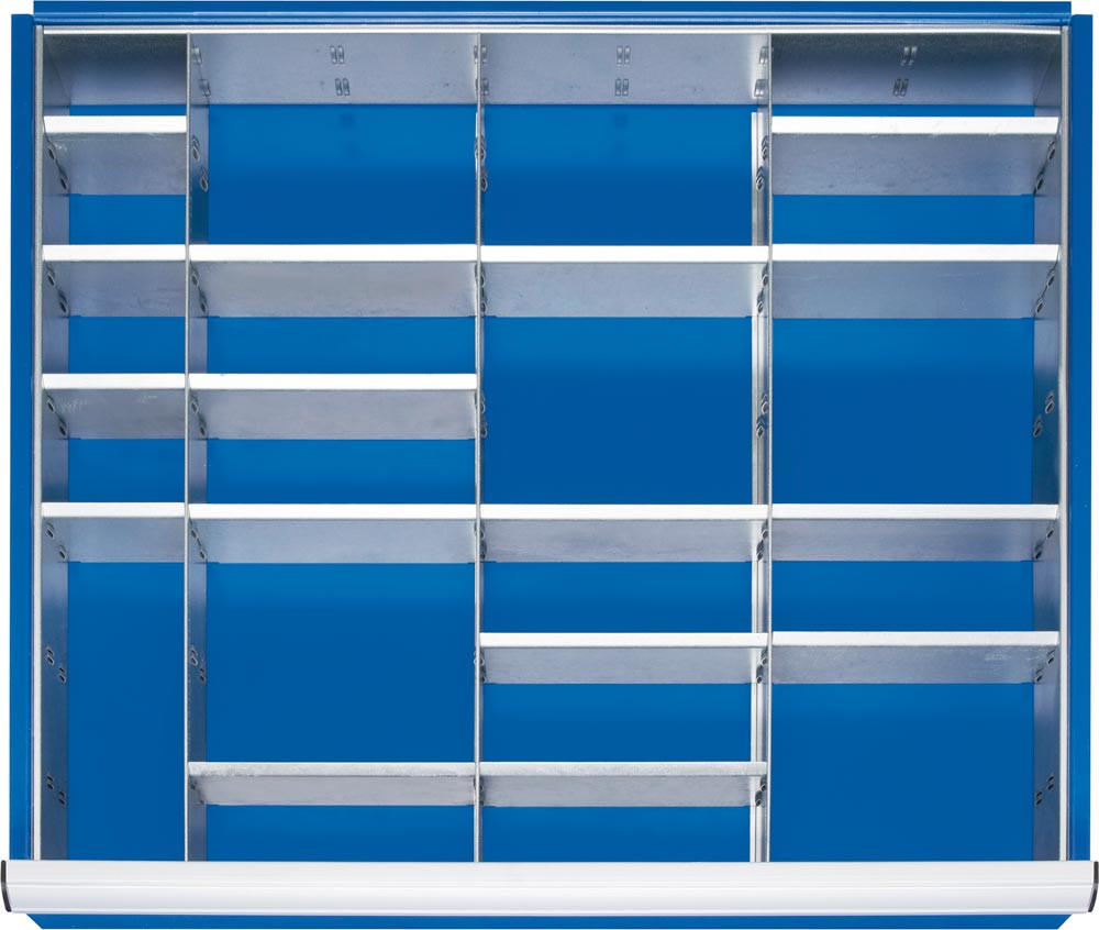 Einteilungssortiment für Schubladen BxT 680x560 mm: 3 Trenn- und 16 Steckwände, für Fronthöhe 120/150 mm