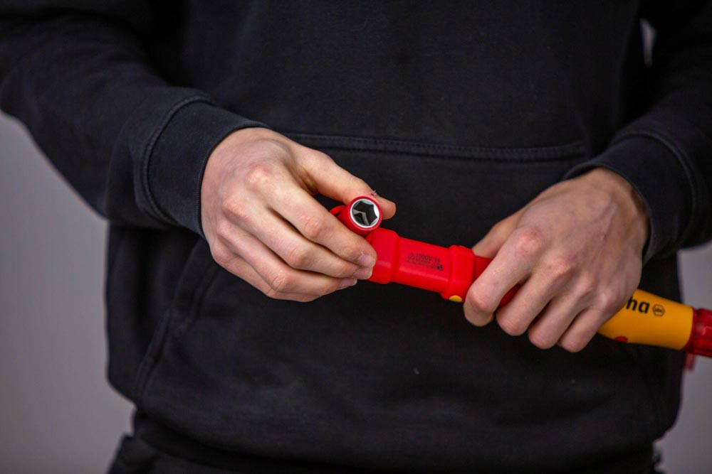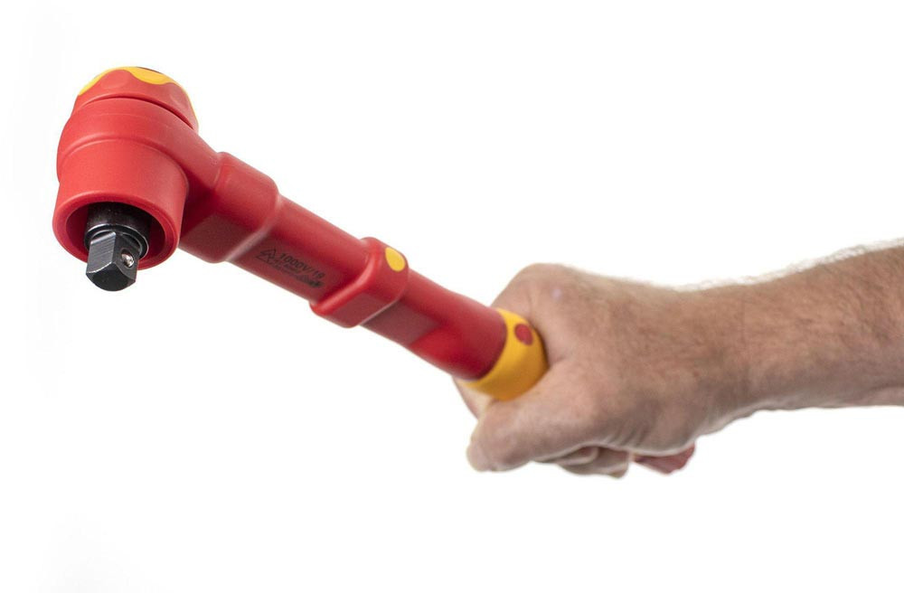 variabel einstellbares Drehmoment · jedes Werkzeug einzeln bei 10.000 V AC getestet und zugelassen für 1.000 V AC · sichere Installation von Klemmen und Muffen, Leiteranschlüssen, Verschrauben von Sammelschienen, für Arbeiten im Bereich von spannungsführenden Teilen bis 1.000 V AC · Genauigkeit : +-4% · 10° Schaltwinkel · Rechts-/ Linkslauf · durch Herausziehen und Drehen des Griffendes kann der benötigte Drehmomentwert von Hand eingestellt werden · die auf den 1/4″ Vierkantantrieb gesteckten Steckschlüssel bieten dank der Kugelsicherung einen sicheren Halt · beim Festziehen knickt die Drehmomentmechanik im Schlüssel bei Erreichen des eingestellten Drehmomentwerts spürbar ab · stückgeprüft gemäß Norm EN/IEC 60900 · nur zu verwenden mit isolierten Wiha Steckschlüsseleinsätzen · inkl. Werksprüfprotokoll