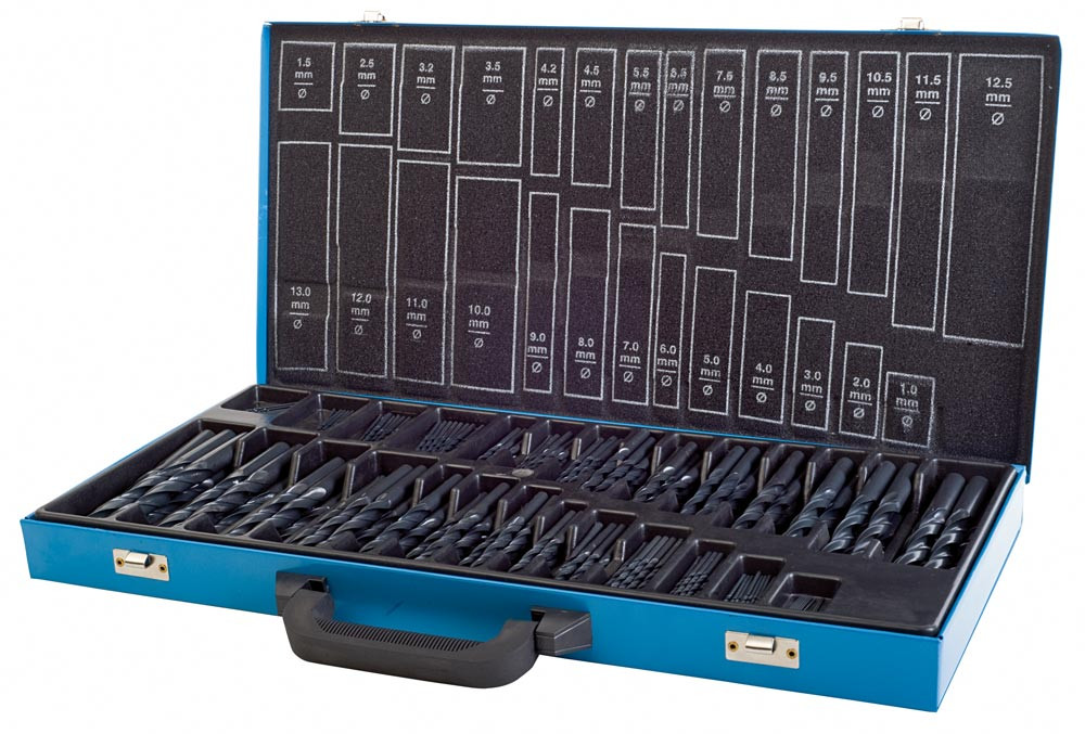 FACTOR-PL HSS-G-Spiralbohrer-Magazin DIN 338, geschl., blank, Kreuzanschl.,230tlg.,1,0-13,0mm,0,5 stgd.