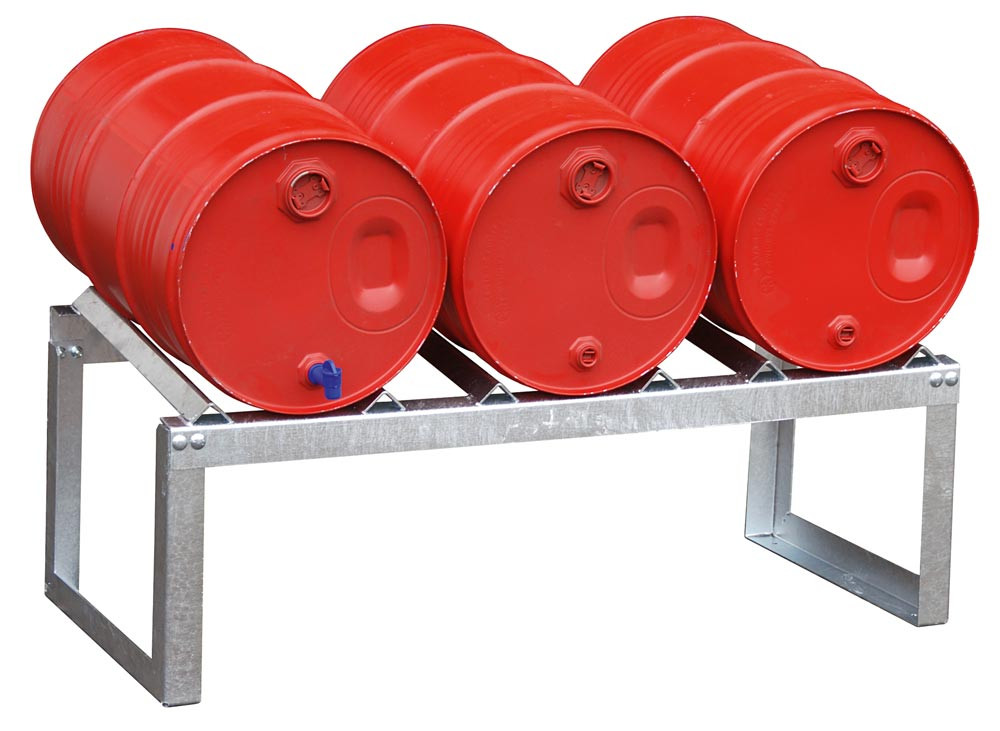 ∙ Verzinkt ∙ Für die liegende Lagerung und zum Abfüllen von 60- bzw. 200 Liter Fässern ∙ Zum Aufstellen auf Auffangwannen mit Gitterrost