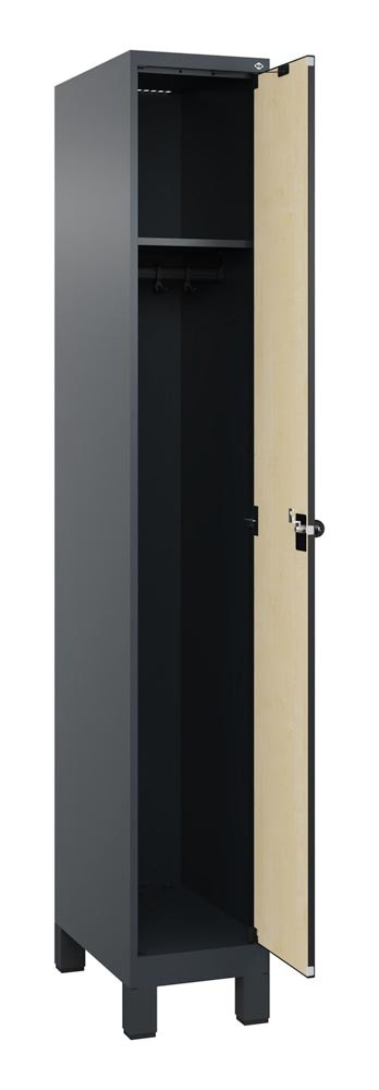 Garderobenschrank, Füße, 1 Abt., Abt.B 300 mm, BxTxH 300x500x1950 mm, HPL-Dekorfront, RAL 7016/Dekor Ahorn E6489791