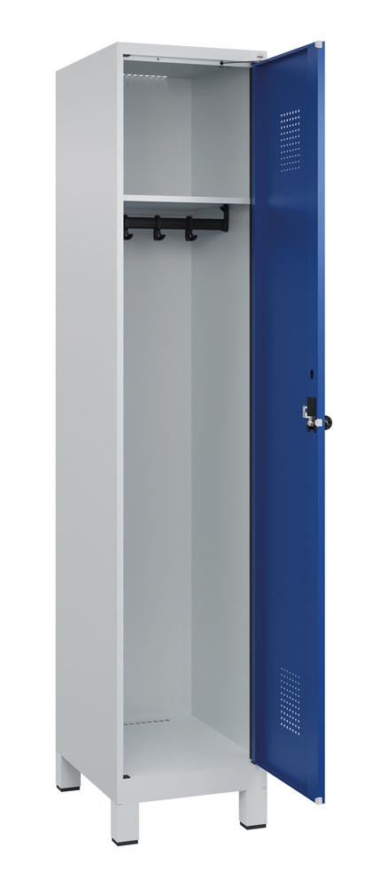 Garderobenschrank, Füße, 1 Abteil, Abt.B 400 mm, Drehriegel, BxTxH 400x500x1950 mm, RAL 7035/5010 E6476553