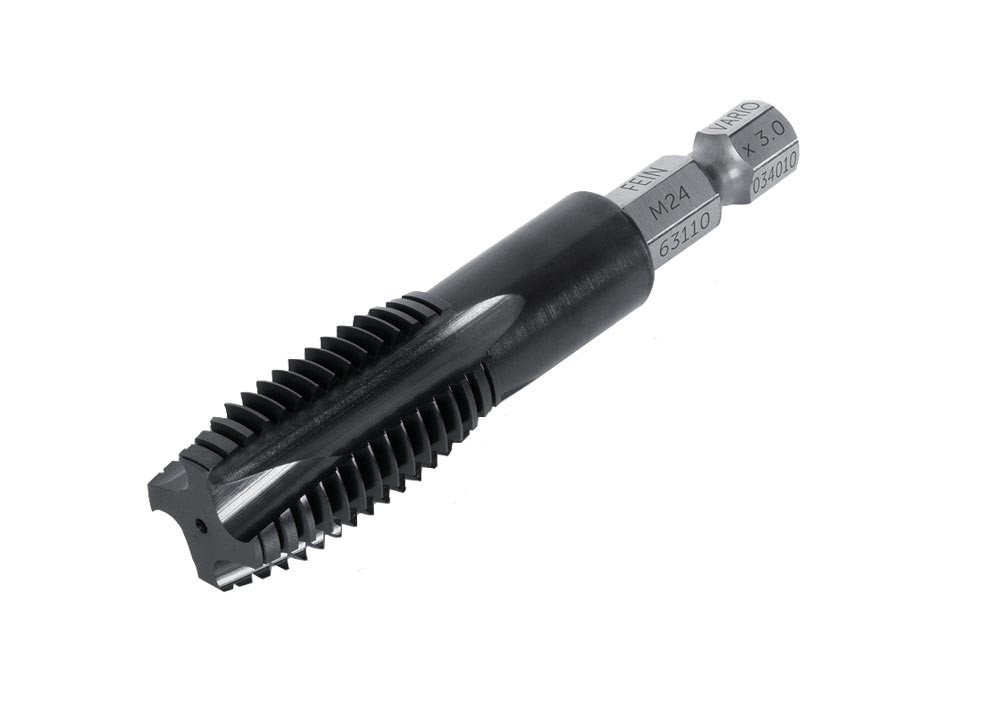 FEIN Vario Gewindebohrer in 11 verschiedenen Größen für Durchgangslöcher. Einzeln oder im Set (M8 - M16) erhältlich. Aus robustem HSS Material mit TiAlN Beschichtung (Titan-AluminiumNitrit). Speziell für die Arbeit mit handgeführten Schlagschraubern. Hitzebeständig bis 800 °C und reibungsärmer dank exklusiver TiAlN Beschichtung.