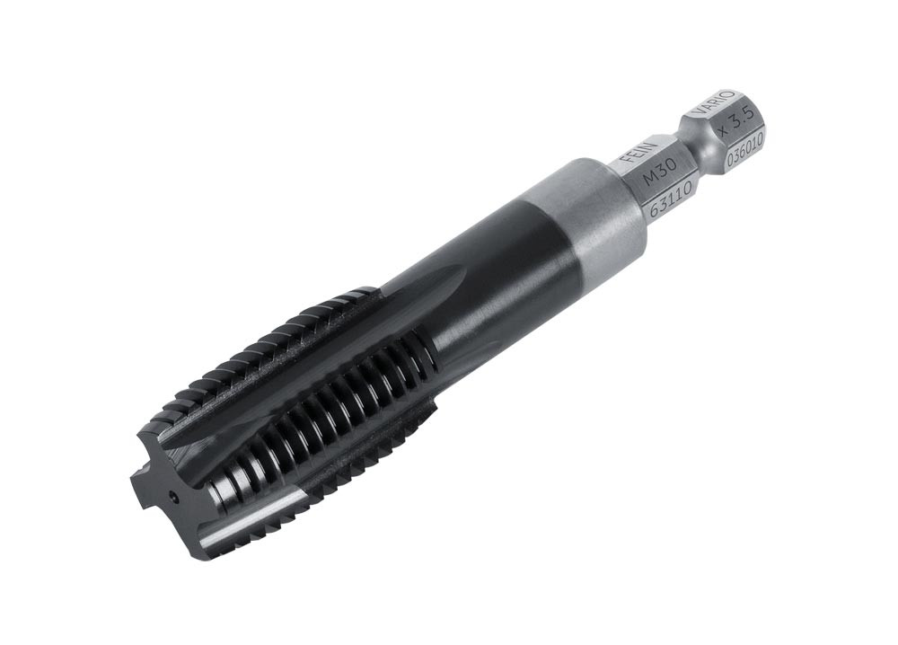 FEIN Vario Gewindebohrer in 11 verschiedenen Größen für Durchgangslöcher. Einzeln oder im Set (M8 - M16) erhältlich. Aus robustem HSS Material mit TiAlN Beschichtung (Titan-AluminiumNitrit). Speziell für die Arbeit mit handgeführten Schlagschraubern. Hitzebeständig bis 800 °C und reibungsärmer dank exklusiver TiAlN Beschichtung.