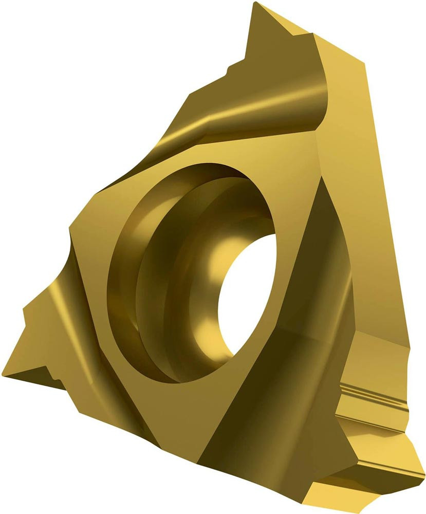 Einseitige Gewindedreh-Wendeschneidplatte · dreieckig mit einem Innenkreisdurchmesser von 9.525mm · für rechtsschneidende Werkzeuge für NPT-Innengewinde mit 14TPI · T8030 PVD beschichtet feinkörniges WC-Co-Hartmetall innerhalb der ISO-Substrats-Bereiche P25-P40/M20-M35 und K20-K40 zum zerspanen von Stahl · Edelstahl und Guss