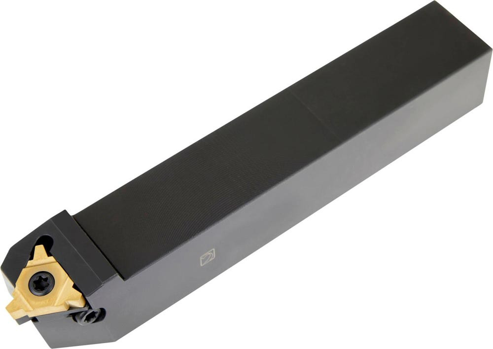 Schraubgeklemmte Gewindedrehhalter mit 1.5° Helixwinkel zum spannen einer dreieckigen Wendeschneidplatte mit einem Innenkreisdurchmesser von 12.7mm (Bezeichnung TN 22EN.. ) · rechte Sonderausführung mit Zylinderschaft · 25mm Werkzeughöhe 25mm Breite und 150mm Gesamtlänge zum Außengewinden