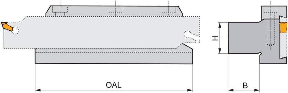 45-DU 3229 ist ein Werkzeughalter zur Aufnahme von Schneiden zum Ein- und Abstechen. Körper für längere Standzeit oberflächenbehandelt.