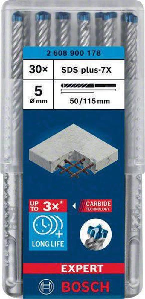 Hammerbohrer Expert SDS-7X Ø 5 mm Arbeits-L.50 mm L.115 mm SDS-plus 30 Stück