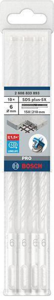 Hammerbohrer PRO SDS plus-5X Ø 6,0 mm Arbeits-L.150 mm L.210 mm SDS plus 10 Stück