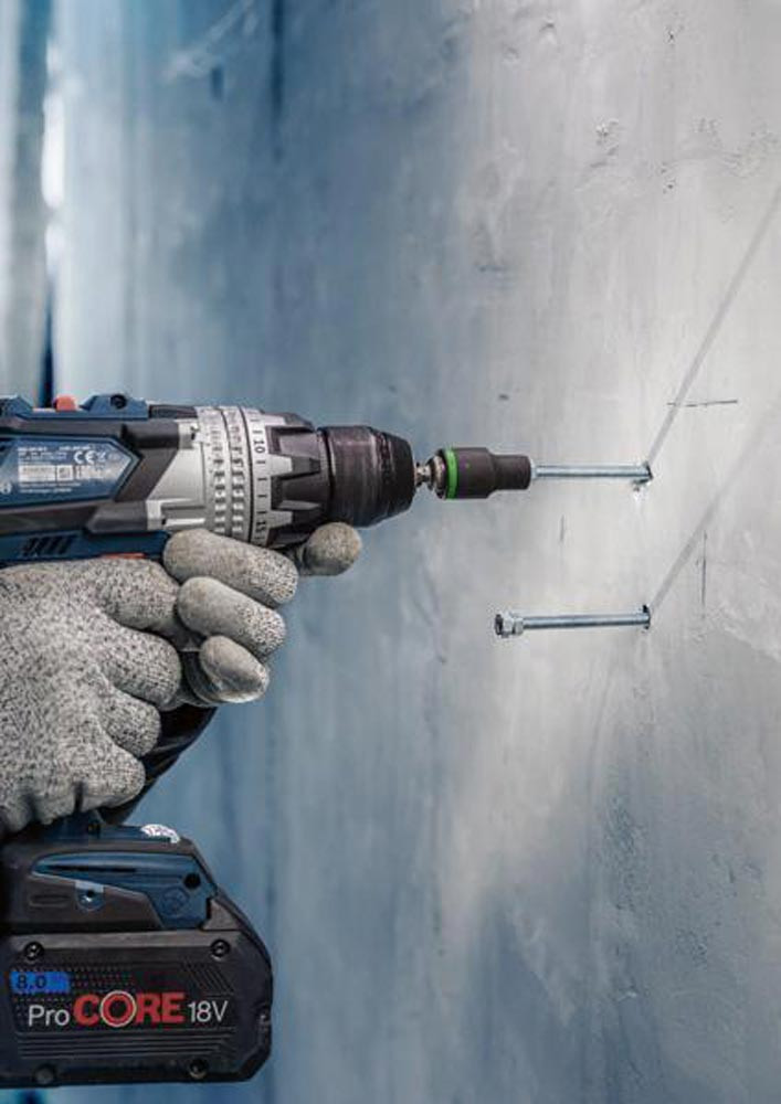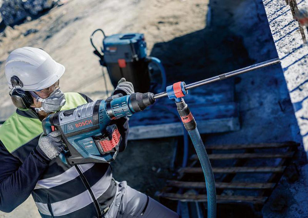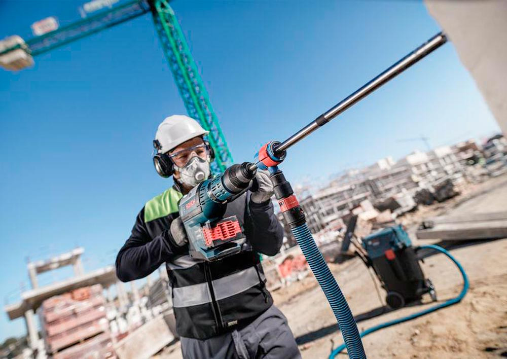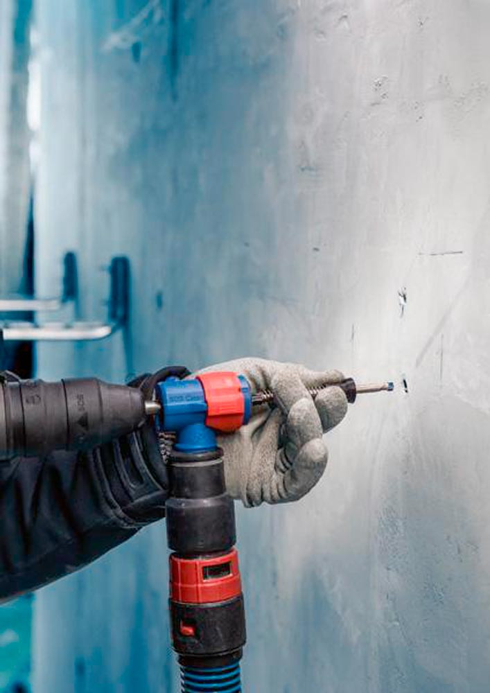 Bohren in Stahlbeton mit verbesserter Staubreduzierung! Durchdringt Stahlbeton mit einem Voll-Carbide-Kopf mit 4 Schneidern Installateure und Bauarbeiter wissen nur zu gut · dass beim Bohren in Beton große Mengen an Staub anfallen. Besonders unangenehm ist dies beim Bohren über Kopf oder beim Bohren und Reinigen für chemische oder mechanische Dübel. Für diese anspruchsvollen Arbeiten haben wir das EXPERT SDS Clean plus-8X Set entwickelt. Mit diesem Set bohrst und entfernst du gleichzeitig Staub und Bohrmehl · sodass mühsame Reinigungsarbeiten entfallen. Mit EXPERT SDS Clean plus-8X Set wird der Staub beseitigt · wenn du über Kopf oder eine ganze Reihe von Löchern für mechanische oder chemische Dübel bohren musst. Der Bohrer ist mit einem Vollhartmetallkopf mit 4 Schneiden und innenliegendem Absaugkanal ausgestattet. Zudem haben wir den SDS Clean plus Anschluss verbaut · der für alle SDS Clean plus-8X Bohrer geeignet ist und sich leicht montieren und abnehmen lässt. Er verbindet die Bohrmaschine mit Staubabsaugungen · sodass Staub und kleines Bohrgut durch den integrierten Absaugkanal aus dem Bohrloch extrahiert werden kann. Die vormontierte Staubkappe unterstützt das Auffangen von Schmutz und Staub · sobald du mit dem Bohren beginnst. Hocheffizienter Abtransport von Staub mit Bosch Particle Control