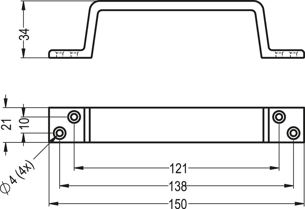 Handgriff 420 Ausladung 34 mm Länge 150 mm Breite 21 mm Aluminium silberfarbig eloxiert Anzahl Löcher 4 E6471280