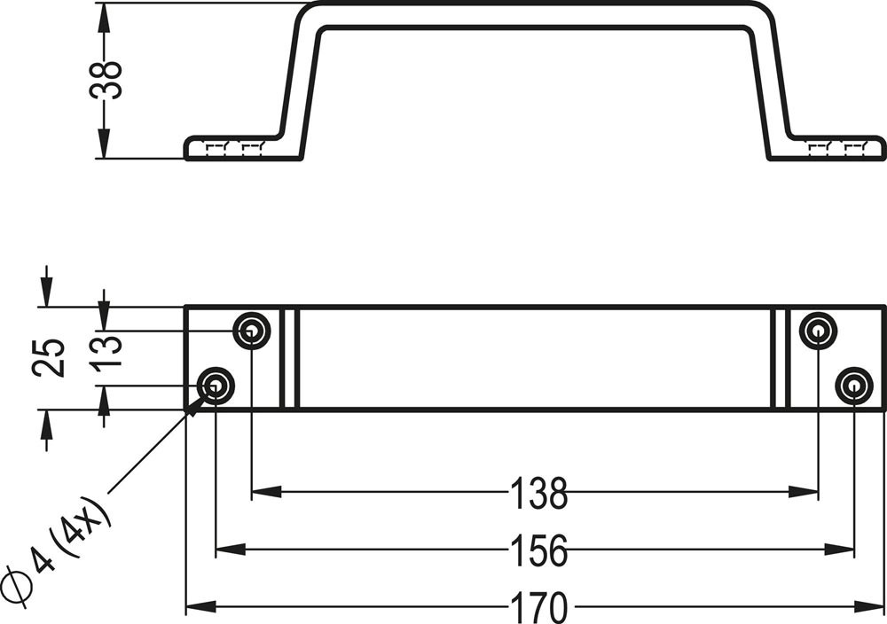 Handgriff 420 Ausladung 38 mm Länge 170 mm Breite 25 mm Aluminium silberfarbig eloxiert Anzahl Löcher 4 E6470694